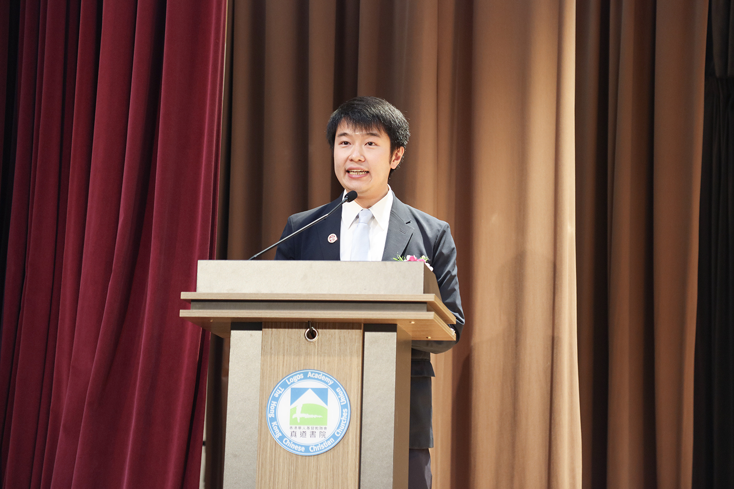 近年,人工智能(AI)大行其道,發展愈來愈迅速,可輕易生成電腦編碼、文章或圖像,幫助人處理工作;遺憾是近期卻發現有學生提交論文時引用了人工智能製作的虛假文獻,他強調,人工智能與人最大分別,在於人有品格操守和原則;他期望同學在嶄新時代中善用人工智能,而不是完全倚賴和信任,並秉持誠信操守。「作誠實的人不只對別人交帳,更對創造我們和世界的天父負責。」最後,他期望同學們在頒獎禮上彼此祝賀外,也學習在生命中持守求真行道的心,在面對不同挑戰時,仍作信徒和「真道人」的榜樣。
