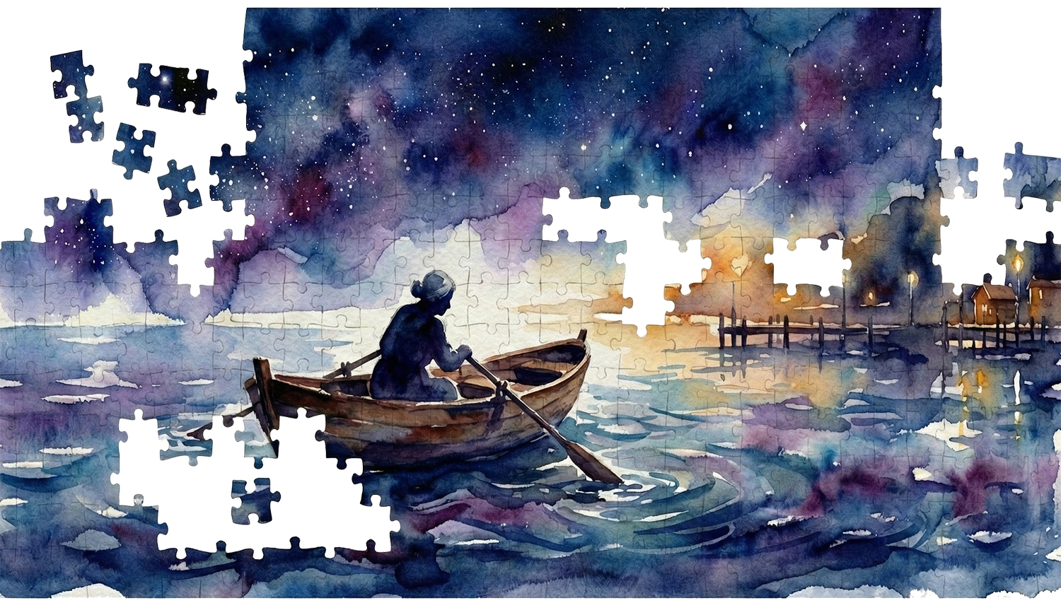 「人跟人,就像零零碎碎的圖塊湊在一起,夾手夾腳要拼出一張圖;若果拼不出圖樣,怎麼辦?當然是自動打散,去找拼得出圖樣的人囉……」來訪親友在外婆眼前晃過,唯岸感覺她那方黑夜的嘴抖出滿天星。「其實呢,圖塊堆在一起有甚麼不好?為甚麼一定要拼成一張圖?岸,你說對不對?」唯岸盯着她那口夜空和手抱的海派星,心房緊了一下,想拉住她,又想跟她前往彼岸?外婆輕握他軟軟的手指頭,想起麻雀檯上消失了的微笑,安慰他:「別難過,每個人都缺掉很多圖塊,不只一張嘴巴;我們的圓滿不在岸這一頭,而在另一頭呀!」