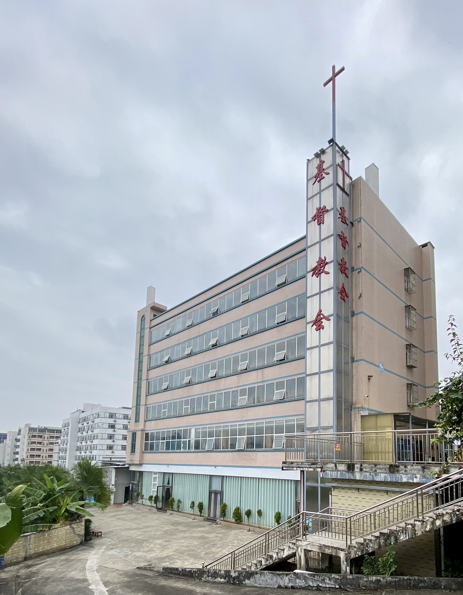 由落馬州—福田岸入境深圳,到了口岸大樓的地面層,依隨着指引的路標,走出大樓,前去就在旁邊的地鐵10號線福田口岸站。這個是始發站,登上車廂都是對的行駛方向。由這裏乘坐二十二站,去到 平湖站;由C 出口上到地面,旁邊是平龍路。沿着平龍路的輔路走,大約十分鐘,眼前隔着一坪小型停車場望去,就見到一棟高豎十架的宏大教堂—「基督教平湖堂」。