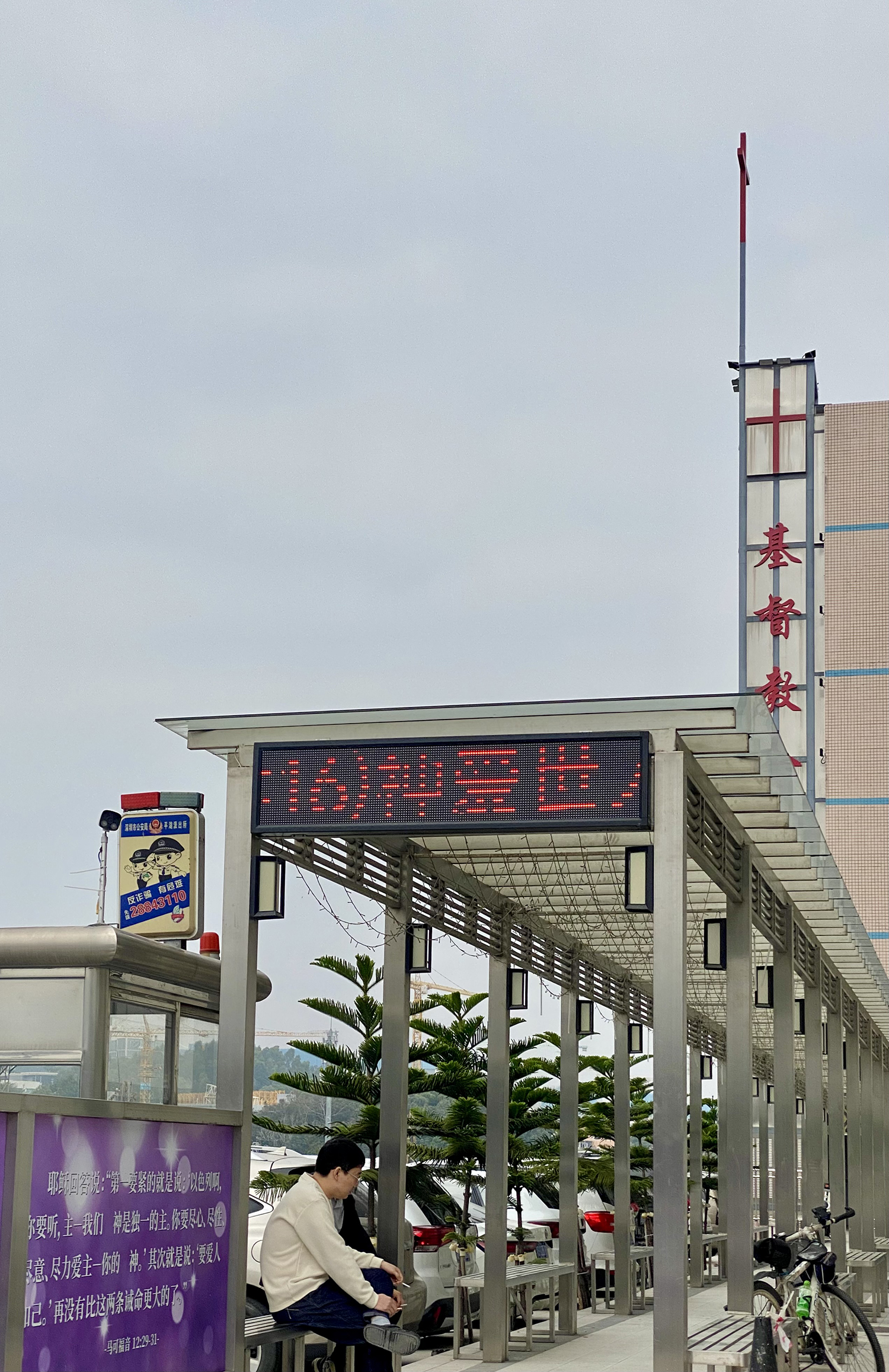 由停車場的入口開始,是一系列「與神同行」的主題展板,附着一系列「智,貴於敬畏」的經文⋯⋯。裝置這些大型展板的位置,都顯出仔細的心思。它們都安放於像是擱在地上的高度,這剛巧是駕車者的視平線所及,同時又不礙司機的駕車視線。每個泊位,都可以望見矚目的「神愛世人」及十字架。