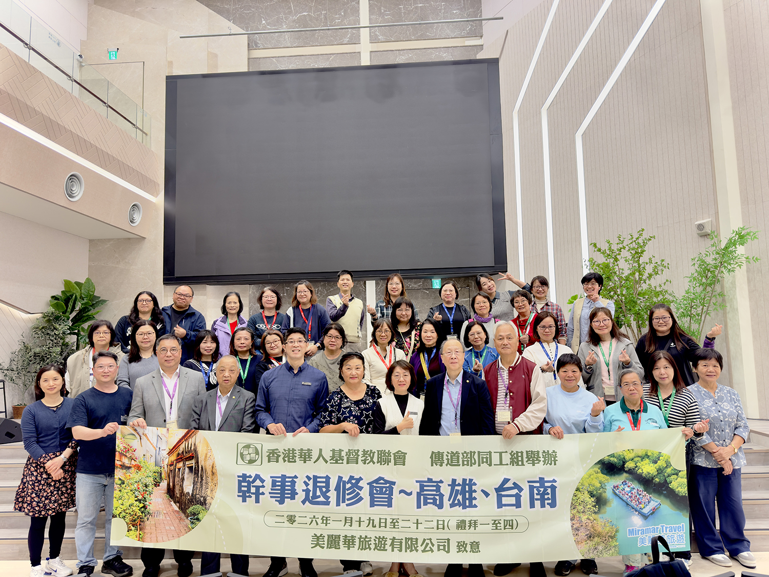 香港華人基督教聯會傳道部同工組於1月19至22日前往台南及高雄舉行「幹事退修會」。是次退修會全團共有31人,分別來自25間教會。