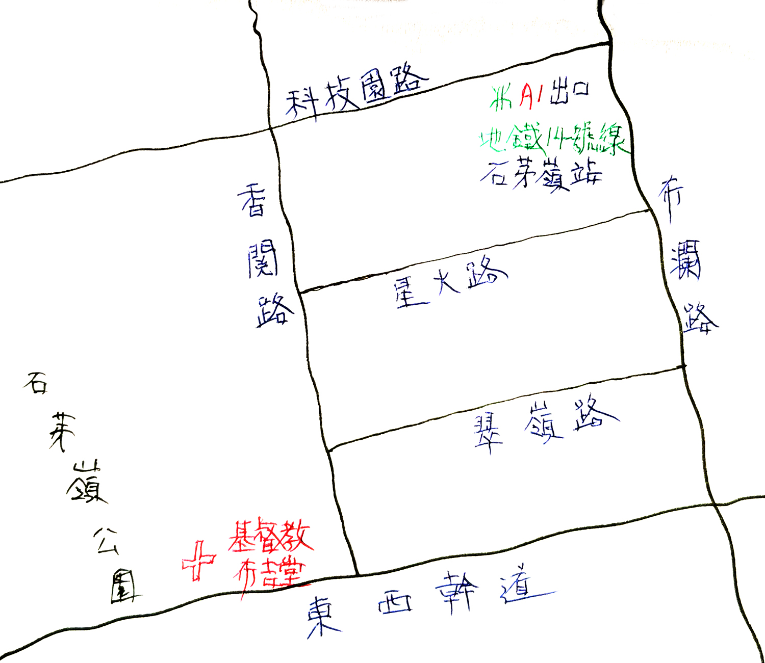 由石芽嶺站A1出口走上地面,旁邊是科技園路。依着本文附圖所示走,只需拐兩個彎,不消半句鐘,就來到「深圳市基督教布吉堂」。