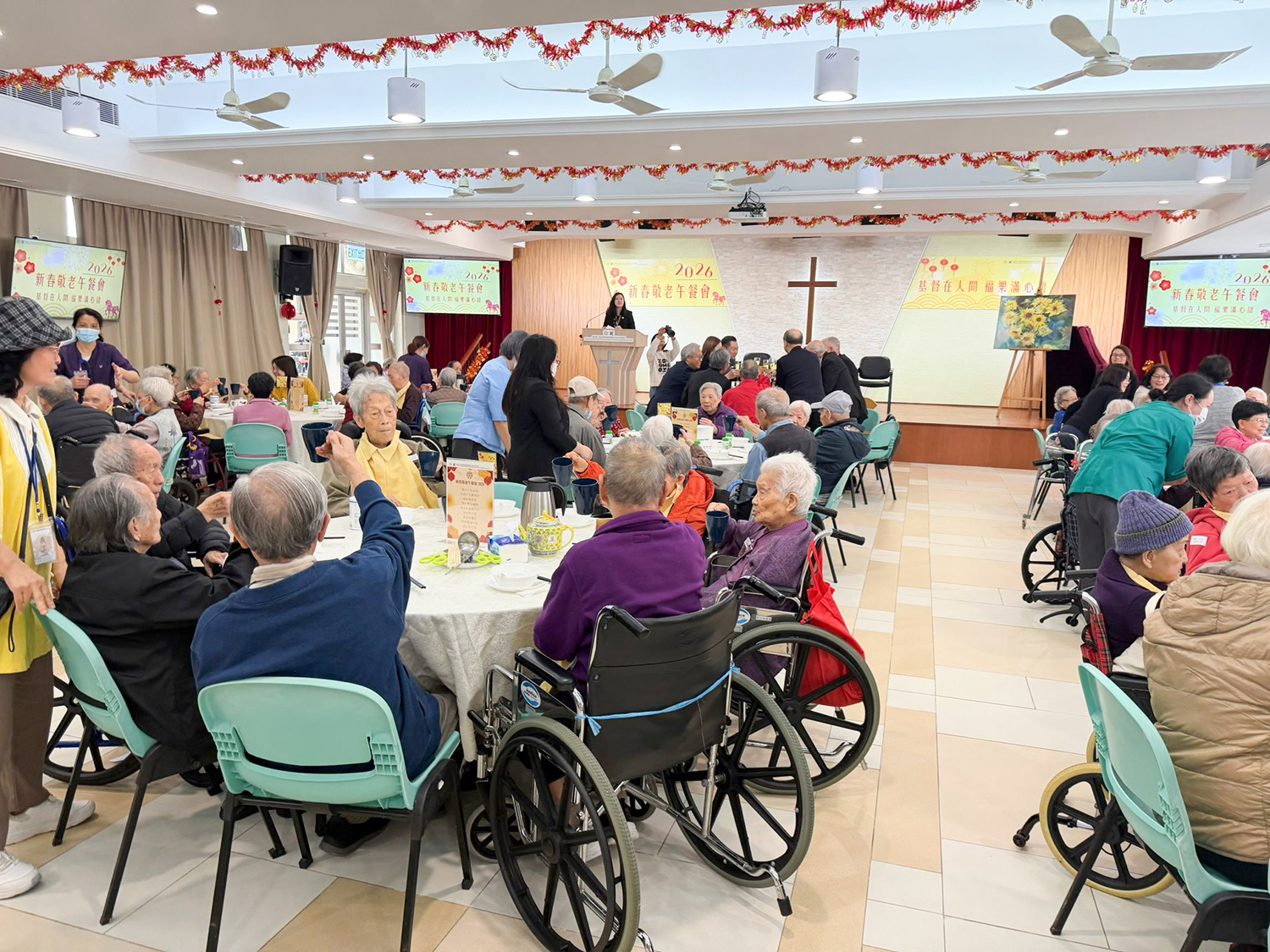 香港華人基督教聯會廣蔭頤養院(綜合安老服務)已於3月 7 日在該院(九龍觀塘功樂道88號)舉行「新春敬老午餐會」,聯會執董、慈惠部委員、頤養院長者及家屬一同出席,齊賀新春佳節。