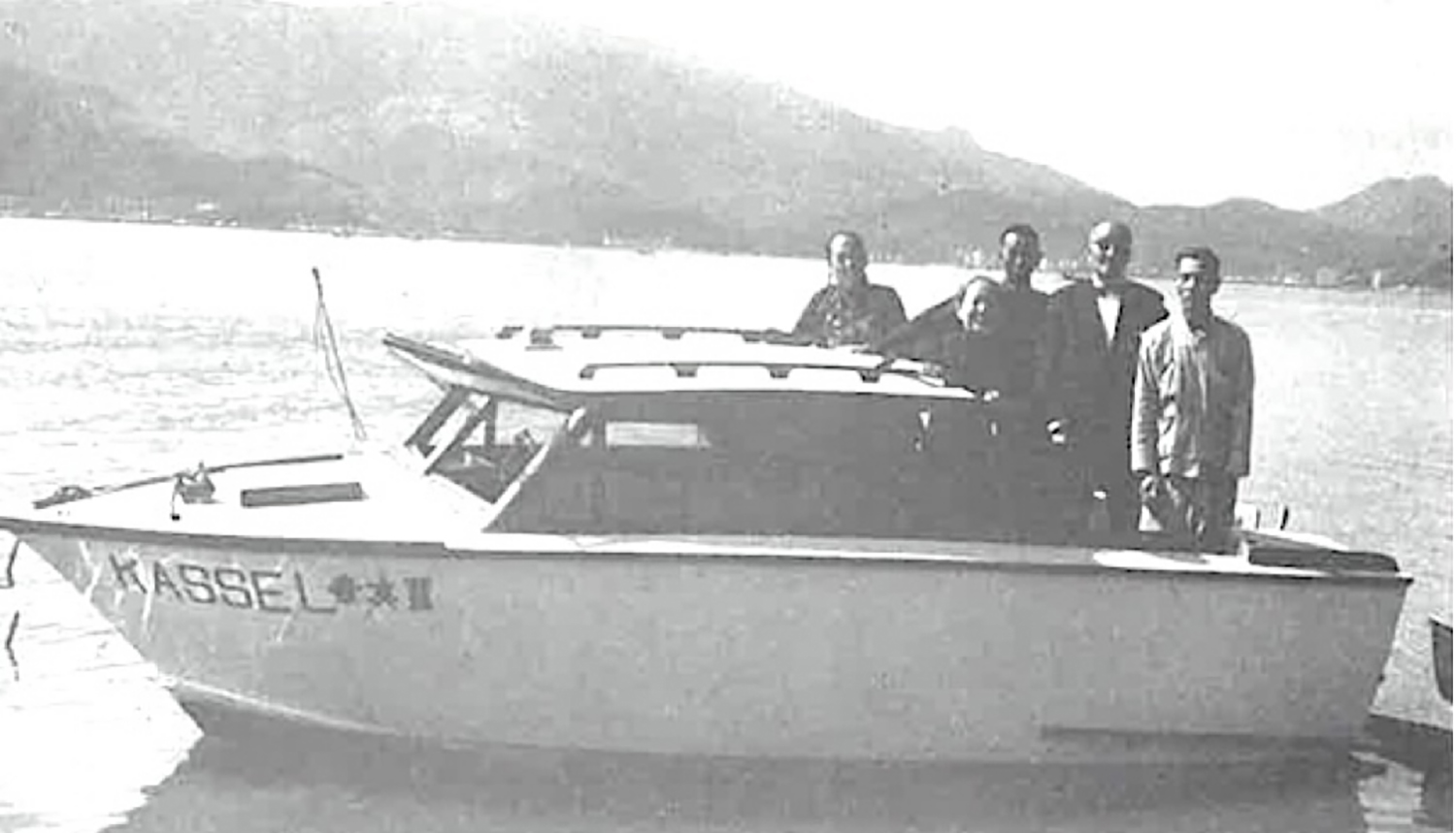 ▲卓恩高長老(右二)與傳道部部分職員乘坐福音船往新界沿海村莊佈道。