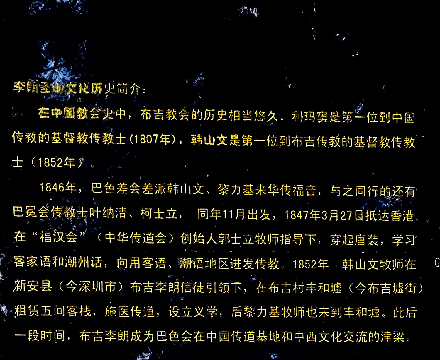 方舟甲板的邊旁,就是小山丘之麓的矮坡,但見ー扇長達百米的墨石金字,詳細刻記巴色會教士在本鄉的服務和建樹。這是風雨無損的天國福音見證。
