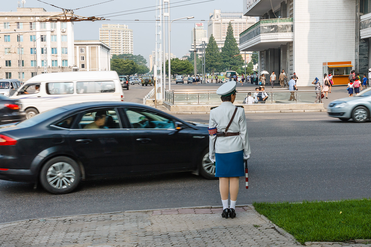 市中心的車輛多了,十字路口的交通女警忙碌地舞動着指揮棒,但交通燈和街燈仍沒有亮起,(大概能源仍是不足),街上行人多了很多,身上的顏色也多了,大家的衣著除了灰色、藍色、黑色,還有紅色、粉紅色、綠色。四驅車上,見到遠處高樓的燈光,近處店舖及食店的燈光,還有叫賣的小販,……平壤像沈睡後慢慢醒來了。