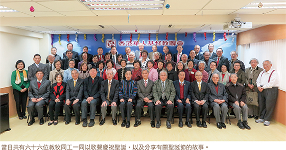 香港華人基督教聯會傳道部會員堂退休教牧團契舉辦「聖誕音樂崇拜」,已於十二月十一日上午,在聯會教牧中心舉行。當日共有六十六位教牧同工參與其中,一同提前歡慶聖誕,分享聖誕的真諦,以及共享主內情誼。