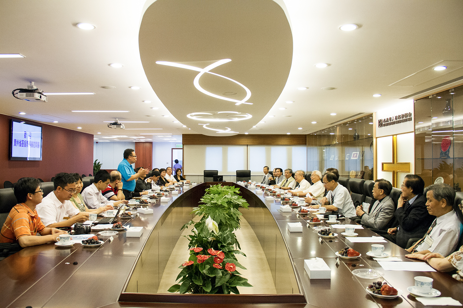聯會大樓三樓全層為會議室,設計新穎、現代化,設有四個投影螢幕,以便播放影片或照片,向到訪嘉賓分享聯會的事工。極備特色的是,會議室天花板採用了五餅二魚設計的內置燈槽。陸幸泉牧師表示,在新約四卷福音書中,均有記載五餅二魚的神蹟,其中馬太福音亦有記載:「耶穌說:『拿過來給我。』於是吩咐眾人坐在草地上,就拿着這五個餅,兩條魚,望着天祝福,擘開餅,遞給門徒,門徒又遞給眾人。他們都吃,並且吃飽了,把剩下的零碎收拾起來,裝滿了十二個籃子。吃的人,除了婦女孩子,約有五千。」(太十四19-21)希望透過五餅二魚的神蹟來宣告,上帝會供應及看顧屬祂的兒女。會議室在重新裝修後,比從前更寬敞,同時設有完善的音響設施,在會議進行時,讓每一把聲音都得到重視。