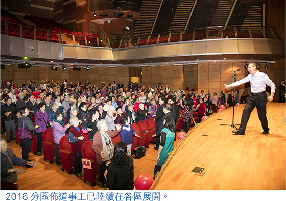 第二屆分區佈道事工由去年十二月份開始陸續舉行,慈王區於十二月十二日打響頭炮,在國際基督教優質音樂中學暨小學舉行「耆樂無窮長者佈道盆菜宴」。當日主辦方帶領三百位長者一同大玩遊戲及跳笑療操,且安排魔術、讚美操、福音粵曲及音樂劇表演,音樂劇由該校親子義工隊演出,以數個串連故事講述迷信、貪婪等人性醜惡,及信耶穌後的新生命。
