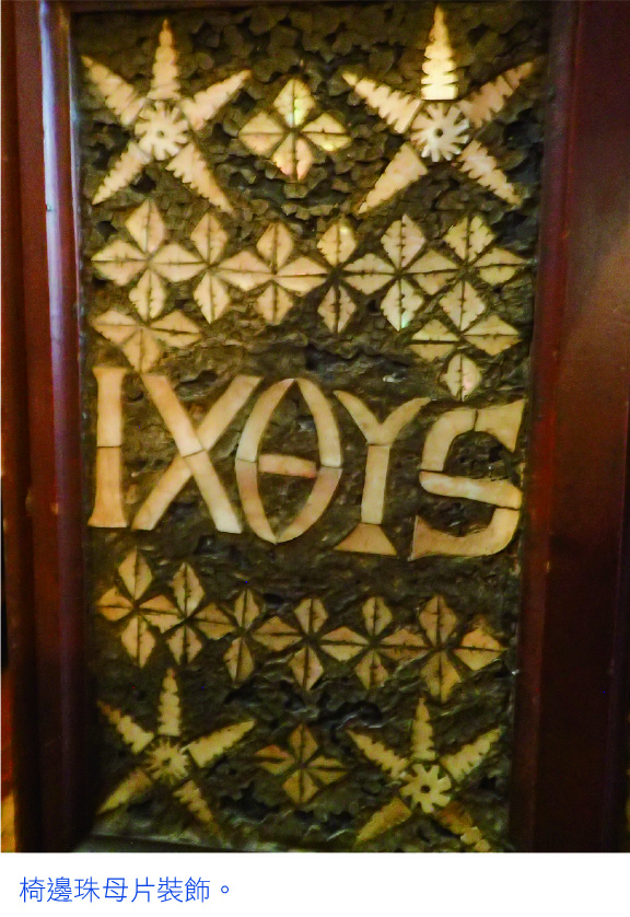 既然身在諾爾福島,筆者就趁舉行崇拜開放公衆入內時前往,但見一百四十年歷史的教堂建築精美,古色古香,典雅細緻。除了風琴和彩色玻璃窗別具風格和典故,最吸引筆者的是紐西蘭栲力木製教堂長椅,兩邊靠手用珍珠母殼細片鑲嵌成不同幾何圖案,夾雜着美拉尼西亞民族色彩的宗教主題,例如十字架、鴿子、魚ICHTHYS一詞。難怪這間教堂是澳洲十大著名地標排行榜上位列第四。