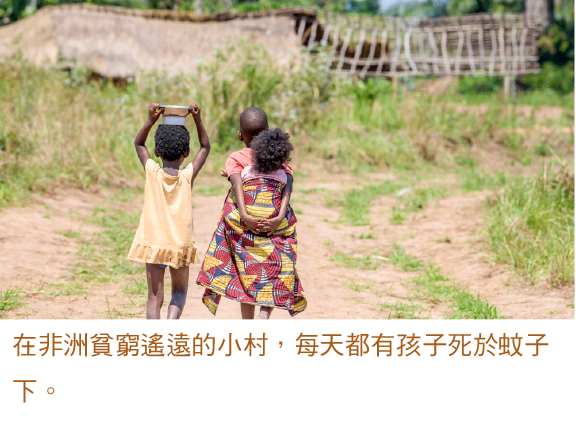 估計蚊每年奪去80至100萬人的性命。每天每日,小蚊子把奪命的瘧疾病毒、黄熱病毒、登革熱病毒等射入無數人的身體裏,沒有適當及時的醫治,隨時喪命。在非洲貧窮遙遠的小村,每天都有孩子死於蚊子下!