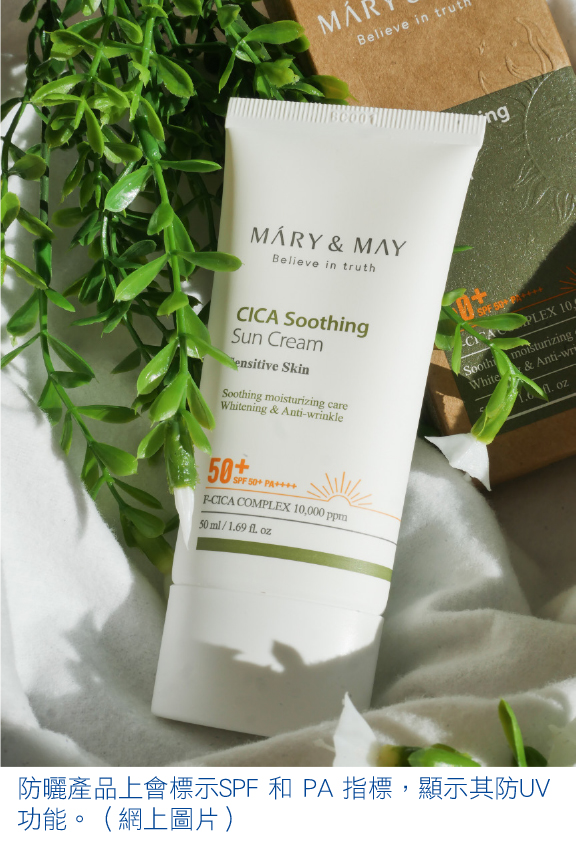 其他化學性防曬成分會吸收太陽光中的紫外線,再以熱能模式釋放這些額外能量,達至防曬效果。防曬產品上很常見的SPF 和PA數值,反映產品對UVB 和 UVA的防曬指標。一般城巿生活,用SPF 25-30和PA+++已經足夠,戶外則需使用更高度數的產品。要留意,產品度數反映的抗UV能力不是按正比或倍數增長的,如SPF 15 能阻擋93.3%的UV,SPF30達96.7%,並會因流汗、抺扞、水上活動等而減少,所以謹記要留意產品的有效時間和抗水性,按情況補塗。最後,防曬產品只是延後曬紅和曬傷,不是完全阻隔的。