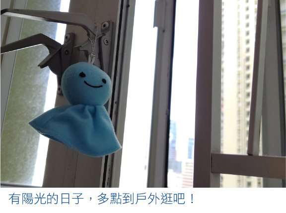 陰天和雨天彷彿令人提不起勁。原來,陽光與我們的情緒健康有直接關係,當視網膜接收到陽光,會刺激身體分泌血清素(serotonin),能穩定情緒之餘,副交感神經活性也會跟着提升,人會感到放鬆而愉悅。足夠強度的陽光能抑制褪黑激素(melatonin)分泌,於是晚上隨着光強度下降,褪黑激素大幅上升,能助人有好的睡眠品質。