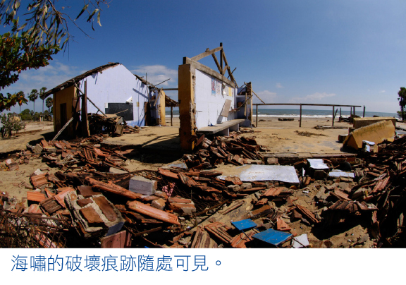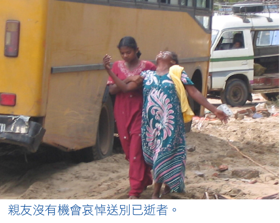 第二天,同事約翰弄來幾個口罩給大家帶上,並興奮地說,「政府今次很快做了幾個重大決定,包括晚上8時後戒嚴,有軍人巡邏,除了救援人員,大家不准在街上,減少趁火打劫和不法行為。另屍體會盡快埋葬,未辨認身分的會留下一隻指頭,留待日後做DNA檢測。這樣,衛生環境希望不會再惡化下去。最後,政府已向全球各國發出援助呼籲,請求大家協助救援工作。」