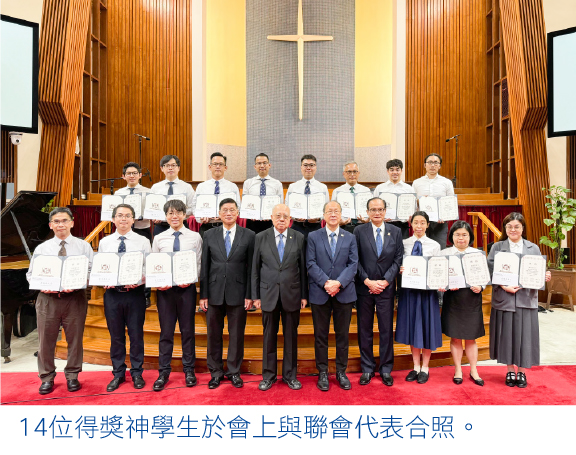 香港華人基督教聯會(下稱聯會)一直支持本港神學教育,每年頒發獎學金予品學兼優的神學生。第三十六屆「香港華人基督教聯會神學獎學金」頒獎禮已於10月16日,在2023年度聯會會員堂代表秋季議事大會上舉行,由聯會主席鍾健楷牧師及副主席余英嶽牧師分別頒獎予14位得獎神學生。