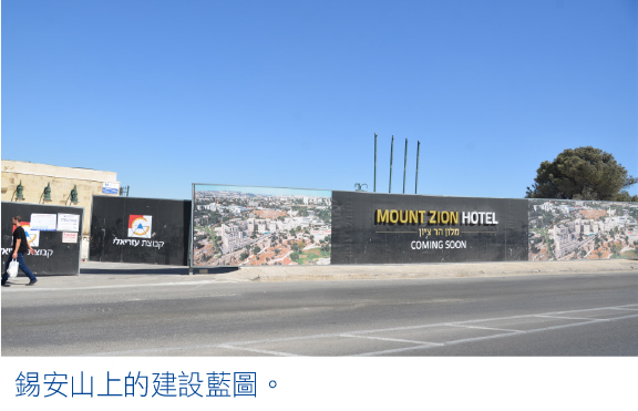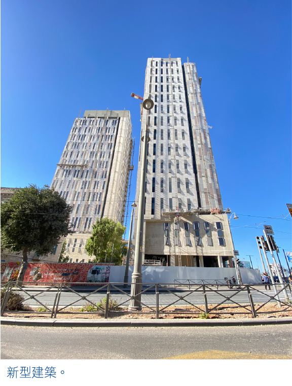 雖然耶路撒冷已經有一條輕鐵往來新舊城之間,例如可以從舊城區的大馬士革門站(Damascus Gate Station)直往新城區的赫茨爾山(Mt. Herzl),但這條輕鐵畢竟只是今年八月才正式開通,站數才三十多個,以國計畫在未來數年會加多兩條路線,站數會加多百個,相信對居民,尤其是自助遊客帶來絕大方便。有了大型運輸交通的配合,現時溜區時,可以看到不少數十層高的新型住宅大廈在興建,新城區故然新盤林立,即使是舊城區,也有不少建築圍街板,而且目測地盤範圍相當大,絕非插針式的那一類建築物,當時想發展商為了營造推銷住宅的條件,在新舊區之間推出一個新字詞,叫中城區(midtown)。除了住宅,在錫安山上也會興建一所大型酒店。