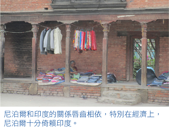 尼泊爾和印度兩國接壤的邊界長1,770公里,雙方國民可以自由出入,不用簽證,也不用護照。兩國每天人流物流頻密,關係唇齒相依,特別在經濟上,尼泊爾十分倚賴印度。尼泊爾是內陸國家(land-locked country),沒有港口,出入口貨物都要倚靠印度。尼泊爾貧窮,工作機會不多,很多尼泊爾人都走到印度大城市工作,成為印度的廉價勞工。
