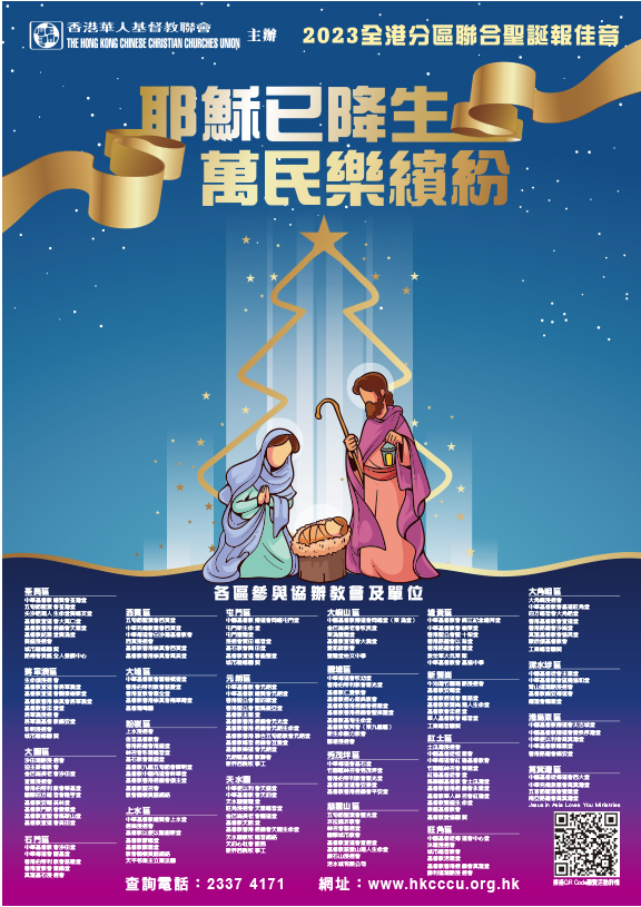 自2001年開始,香港華人基督教聯會傳道部每年12月均會舉辦「耶穌已降生、萬民樂繽紛」全港分區聯合聖誕報佳音活動,旨在鼓勵各區教會在區內報佳音,將溫暖和耶穌降生的福音傳遞給街坊。今年聯會再次與全港22區的教會攜手合作舉辦活動,祝福區內坊眾。