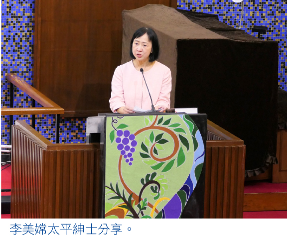 在教育局常任秘書長李美嫦太平紳士的分享當中,再次鼓勵我們與視障人士結伴同行。其實,視障人士要受正統聲樂訓練要面對不少困難。當人面對限制,會很自然地感到猶豫,甚至因而卻步。然而,這些視障人士卻裝備自己,迎難而上。這羣學生讓我們見證只要向着目標進發,心中帶着上帝賜予的潛力,就可突破一切的限制。一個人肉身的眼睛即使因為視障而看不清楚,但他們的心靈眼睛卻是明亮且能觸動人心。從前夢想對他們來說可能是遙不可及,但今天我們見證着他們在追尋夢想的路上發出閃耀動人的光輝。