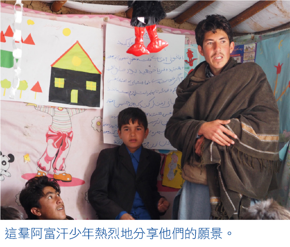 大家好像熱身了。「假如你是阿富汗總統,有權力和資源,你最想做甚麼?」大膽的提問。少年們靜了下來,像很認真地思考着。