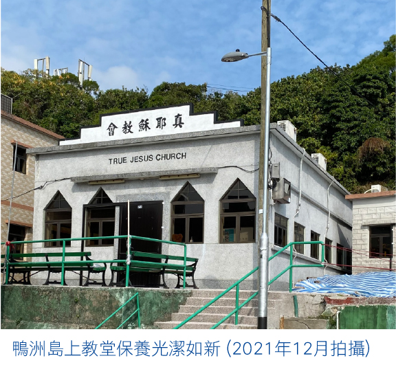 真耶穌教會在香港的第二處教會走過十分傳奇的歷程。來自南洋的領袖幾經辛勤傳道,結果於 1938年在沙頭角、位於華界一邊的墟市設立了教會,會眾都是附近水域的漁民。後來由於政治變易,教會礙於處境艱困,於1952年離開沙頭角墟;漁民會友登上鴨州、沙頭角海的一個荒涼小島,開闢土地建立教會及家園。由一間教會的信眾合力開發一個荒島,之後全島居民都是信徒;這是絕無僅有的獨例。再往後,香港漁業式微,島民都要離鄉謀生;結果鴨州如今回復無人定居,教堂則依然屹立。