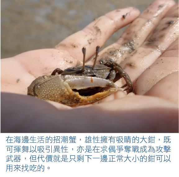 部分較原始的生物會選擇無性繁殖,想增加後代的適應能力,就要找個配偶來合作有性繁殖,並且配偶「質量」愈好就愈理想。當中以鳥類的求偶舞蹈最為人熟悉,也有些雄鳥選擇築巢來吸引異性。還有「華麗服飾」如雄性招潮蟹的大鉗,鳥類繁殖期才出現的飾羽、一些魚類和爬行動物會轉換身體顏色,顏色愈鮮艷代表該雄性的基因愈好,自然更受雌性垂青。