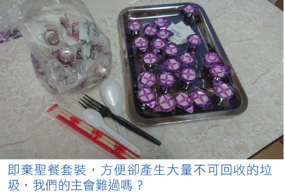 隨着香港不再提供即棄塑膠餐具,餐飲業必然會提供如紙或木材等替代材質的即棄餐具。然而生產這些餐具耗用更多天然資源,以及背後的碳排放,仍是傷害環境。香港生活繁忙勞碌,令我們想減少「不必要的勞動」而選用即棄品,無可厚非。上主不是要我們成為「環保法利賽人」,而是期盼我們在有力有空間之時,嘗試顧念其他受造物,於日常生活中作出小改變。