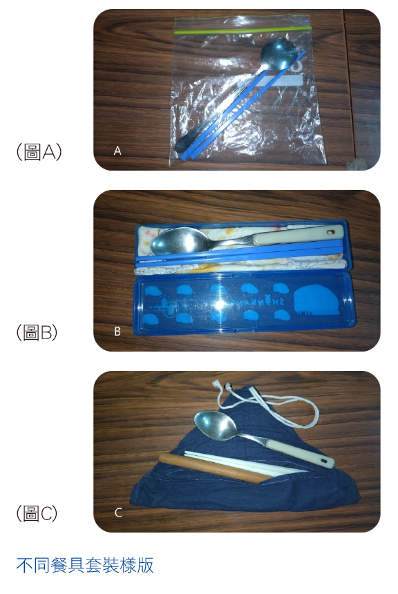 或是找個小盒子, 內放手帕和放餐具,除了用餐時可減少使用紙巾,餐後也可用手帕包着已使用的餐具,回家後只需清洗餐具,盒可以不清洗,手帕丟洗衣機,也是方便的選擇。(圖B)