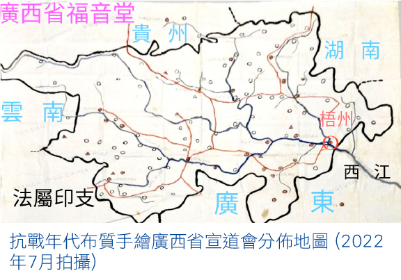 宣道會是第一個能夠留駐在廣西的西洋教團。廣九鐵路連接廣州至九龍,於1911年全線通車。在此之前,由於廣西地區採取西江水道的內河船運通往澳門較為便利;因此宣道會華南區的聯絡辦事處起初設於澳門。及至 1932年,廣西同工貝光道(John Bechtel)到香港養病;之後留在香港負責支援廣西前線。
