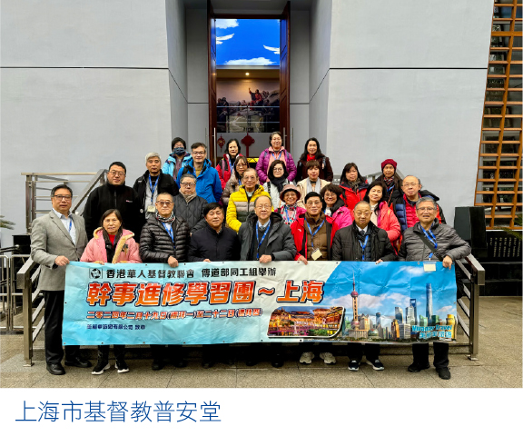 感謝主,香港華人基督教聯會傳道部同工組主辦第十二屆「幹事進修學習團」在上海舉行,回想四日三夜的行程,是一個勞逸結合的安排,看見眾人十分享受牧者主領的早禱會、專題講座及培靈聚會,幹事們的心靈得以更新,得以滋潤,各人獲益良多。