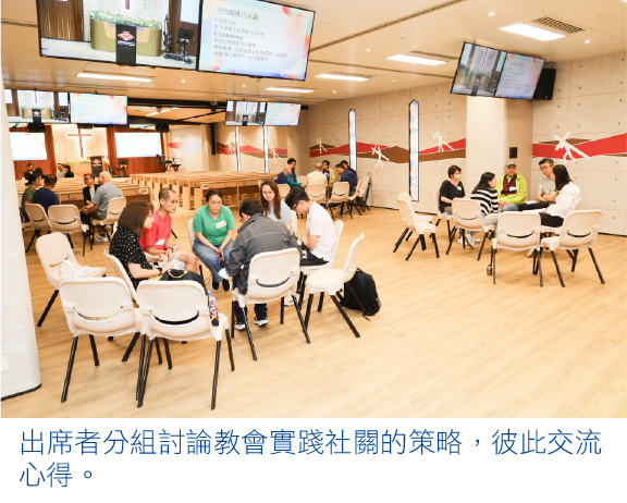 他強調,社區服侍目的是傳福音,並提升受助者的能力感及幸福感,讓他們知道自己也可為教會及羣體作貢獻;對內方面,則可建立青少年新一代,同時訓練門徒。策略上,他提到與機構建立伙伴關係,但並非一次性或項目性的合作形式,而是製造空間讓機構融入教會中,例如借出場地舉辦活動,甚至讓機構同工在教會內辦公等。他表示,機構將事工及關係網帶進教會,不但提升了教會的接待能力,弟兄姊妹也藉着當中的事奉而成長。