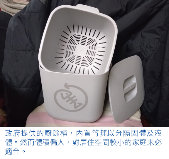 在城巿做廚餘回收,首要面對儲存問題。在分解過程中廚餘腐爛帶來的氣味,是細菌分解的副產品,尤其在水分充足時味道更明顯,還可能引來不受歡迎的昆蟲。香港的濕熱氣候,讓細菌能快速滋生,所以適當的暫存方式尤其重要。