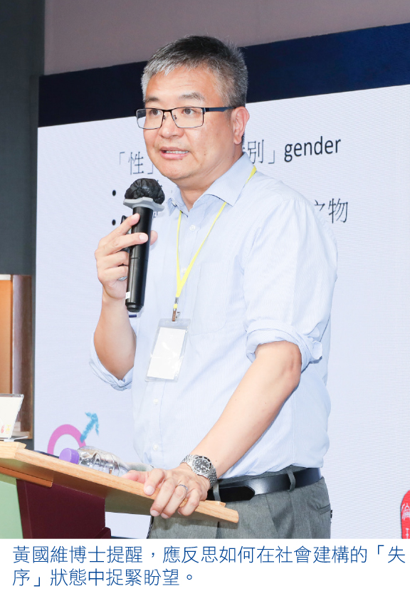 黃博士引述,安德森整合了心理和生理角度,認為人須按其生理本質上的男女之別,發展健康的性別身分。然則,他否認此說容不下「非二元性別」或性別不安的羣體。基於人本有上帝的樣式,皆有着上帝所賦予不可侵犯之同等尊嚴,他強調,律法亦非只為定罪,而是了解自我的過程,幫助人分辨何謂美善之事。面對性別差異,黃博士道出予人釋懷的神學意義:此現象可視為社會建構之「失序」狀態,而每個人亦無法倖免成為「被罪者」──一種非自我的選擇。然而,作為同行或牧養角色,他提醒,重要的是反思如何與他們面對「失序」,「不一定返回原初的創造秩序,救贖非在於人,應等候終末的新天新地」,以致人在地上,仍能活於終極盼望之下。