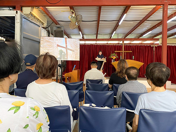 現時大樓尚未動工,我們只能在這地皮上申請作臨時聚會之用,現在,本堂崇拜人數約70至80人,教友多是東涌居民。現教會在即將興建新堂之地盤上,以幾個貨櫃組合而成「帳幕教會」,在內舉行崇拜和小組活動。其特色就是夏天頗熱,崇拜時段需在鐵頂上蓋曬水降溫,甚至部分主禮人或講員因炎熱而不適時,需馬上補充水分和休息;而冬天較冷,因周圍環境空曠,北風凜凜。希望不久將來教會在新教堂聚會,可待改善天氣所帶來的不便。