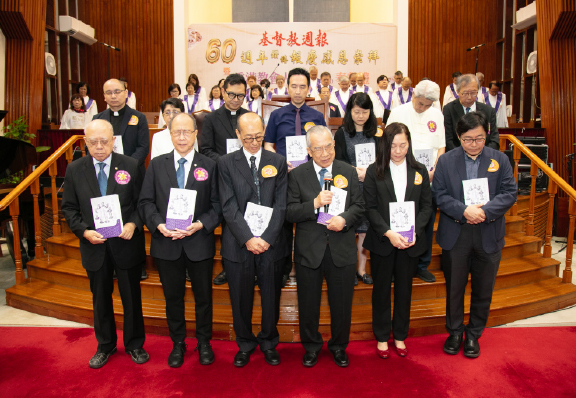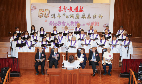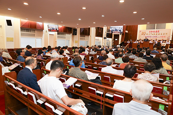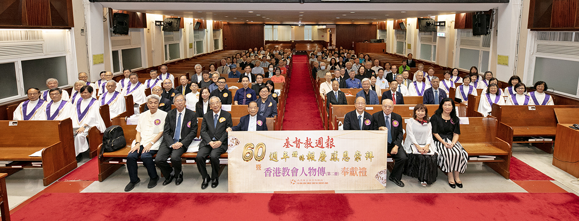 ▲約二百人出席報慶感恩崇拜,同心為《基督教週報》鑽禧紀念獻上感恩。週報跨越逾半世紀,香港華人基督教聯會(下稱聯會)出版部為紀念鑽禧報慶,已於9月7日假尖沙嘴浸信會舉辦「《基督教週報》六十週年(鑽禧)報慶感恩崇拜暨《香港教會人物傳》(第二冊)奉獻禮」。當天聚會除了聯會名譽董事、顧問、執行董事及出版部顧問委員外,還有不同宗派、堂會、機構的教牧同工,以及各文字工作者,與讀者聚首一堂,獻呈感恩。