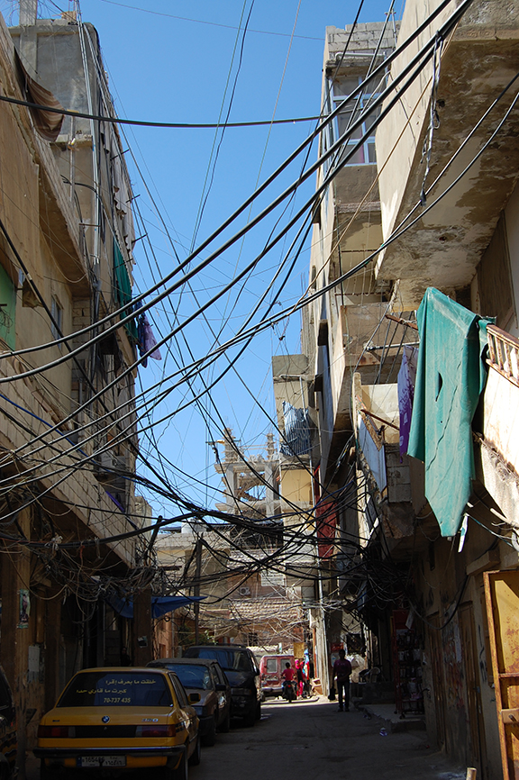 ▲貝魯特市內的巴勒斯坦人難民營,房屋上下縱橫交錯,電線非常混亂,但亂中卻像有序。