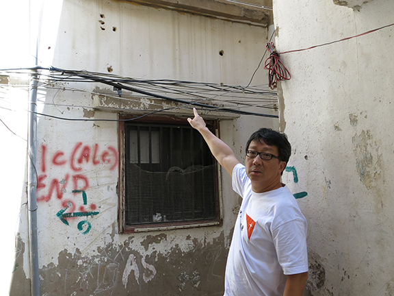 ▲小巷兩旁的牆壁上留下無數大大小小的子彈孔,冷冷地見證着歷史。卡塔爾航空(Qatar Airways)的飛機緩緩降落到貝魯特(Beirut,黎巴嫩首都)機場,內心有點緊張,也有一份興奮。緊張,因為不久前這裏又發生炸彈襲擊,安全情況轉差,黎巴嫩宣明會同事多次詢問,是否需要延後這次探訪?興奮,因為終於有機會來到前線,看望從敘利亞不斷湧出的難民,檢視救援工作的進展、需要和計畫。