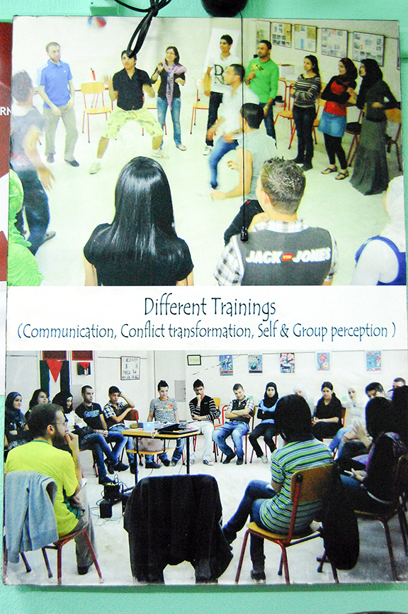 ▲年輕難民在社區服務中心內,學習透過和平、對話方式,討論和解決不同問題,甚至衝突。走進宣明會經營的社區服務中心,有活動室和音樂室,也有補習班:英文、數學、阿拉伯文等。導師和義工主要是住在難民營的年輕人,他們幫助年少的,而自己也有關心的議題和活動,包括改善難民營的衛生和安全環境;學習如何透過和平、對話方式,討論和解決不同問題,甚至衝突。