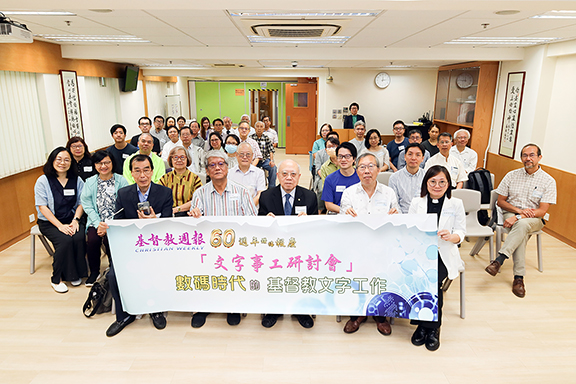 ▲聯會副主席余英嶽牧師(前排中)與一眾講員及參加者合照。文字,於歷史,於現在,皆有其角色,但始終不變的,是作為不同時代下人與人之間的重要連結。為凝聚一眾具負擔之文字工作者,香港華人基督教聯會出版部已於9月28日在聯會教牧中心舉辦《基督教週報》60週年鑽禧報慶「文字事工研討會」,主題為「數碼時代的基督教文字工作」──分別由香港聖公會諸聖座堂主任牧師范晋豪牧師主講「閱讀療癒」;德慧文化執行長陳培德牧師主講「基督教文字工作的影響」;香港基督教零售業協會董事李玉泉先生主講「數碼時代的市場營銷」,最後由道聲出版社社長梁美英牧師回應,分享香港基督教出版業的前景,激勵基督教出版業界繼續奮進。