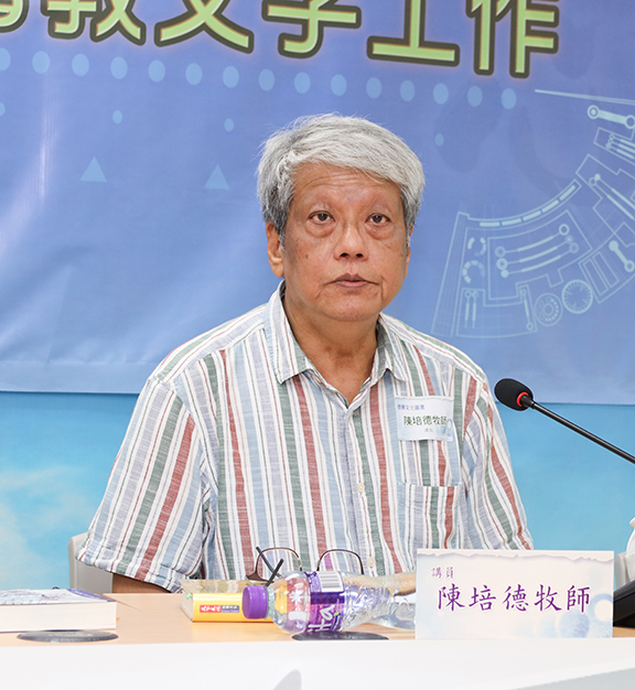 ▲陳培德牧師。陳培德牧師從歷史和現實角度,分析基督教文字工作如何影響教會及社會。他先從基督教傳華的歷史說起,指景教、羅馬天主教會、耶穌會先後來華傳教,惟傳教事業最終衰落。