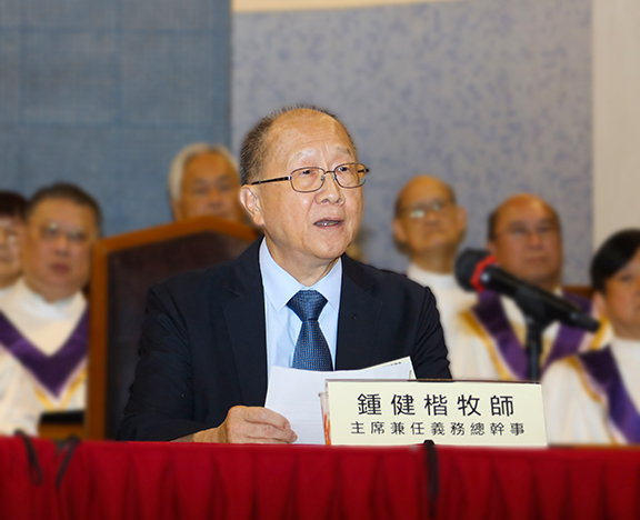 鍾健楷牧師致詞時提及希伯來書中「建造房屋」的比喻(來三3-5),指出建造者比建造物更有價值。他形容各堂會成員亦為建造者,所建造的則是屬靈的、屬於上帝的房屋,而背後真正的建造者原是上帝,最終仍歸於基督所治理。「事工的推展,是集各會員堂成員之努力,才達致今日的成果。故此,每一位出席代表,亦是參與房屋建造的一員」。他又指,聯會正在籌備創會110週年會慶,會慶主題為「基督在人間」,亦能體現肢體一同參與並建造上帝的家。隨後,他寄語聯會及會員堂,繼續連結眾教會力量,共同推動事工與福音工作,為要建立以基督為首的「家」,同時成為更大的教會羣體,為上帝作見證。