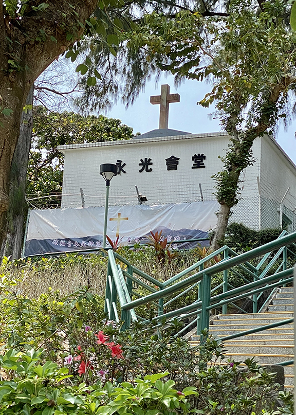 ▲舊日泊駐銅鑼灣避風塘的恩光號福音船延展為現時恩光堂 (2024年10月拍攝)。