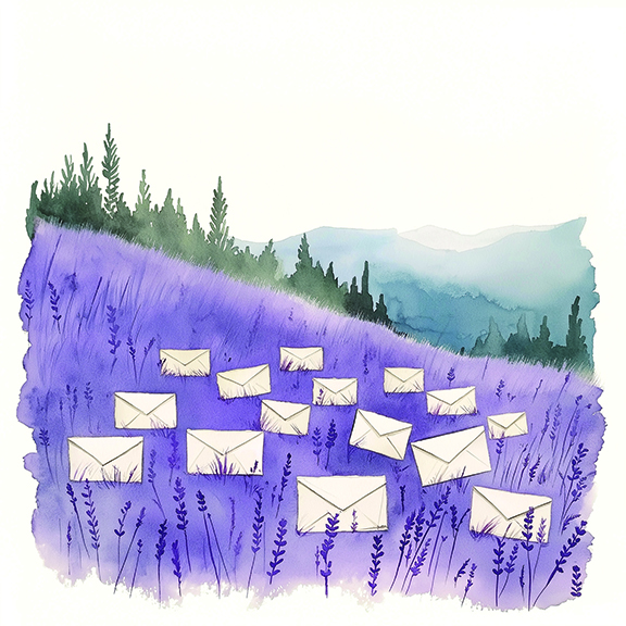 抱着一大疊「親愛的喬治伯伯」,陣陣薰衣草綠過鼻端,淡雅清香、安定神經、療慰心靈;挨靠媽媽枕邊的無數個夜晚,都是此薰衣香護送母女步入夢鄉。這疊「親愛的喬治伯伯」怎也散發薰衣草的田野氣息?