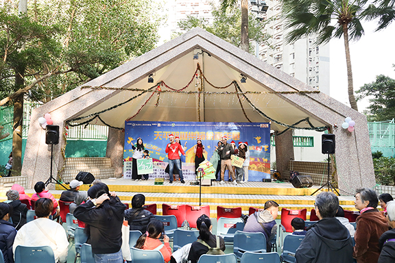 上水區亦於12月14日在天平邨露天劇場舉行「天平聖誕樂繽紛嘉年華」,由聯會副主席余英嶽牧師分享信息,他提及耶穌基督誕生之時,幾位博士前來尋找祂,過程毫不容易。他指,當中有三個祕訣,其一為「合力」,因博士們目標一致,決意要得着耶穌,故在路上能同心合力,向相同的目的地前進;其二,是「努力」,若遇崎嶇難行之路,也不輕言退縮;第三,還需要「毅力」,能夠一直堅持,終能看見耶穌。余牧師以此勉勵眾人,在信仰路上需彼此協力聯繫社區及教會,憑着毅力一起尋找耶穌、分享福音,且同得豐盛的生命。此外,當日舞台上仍有其他表演環節,包括音樂默劇、手語舞和話劇等,台下則設有多個遊戲攤位,派送豐富禮品,眾人滿載而歸。
