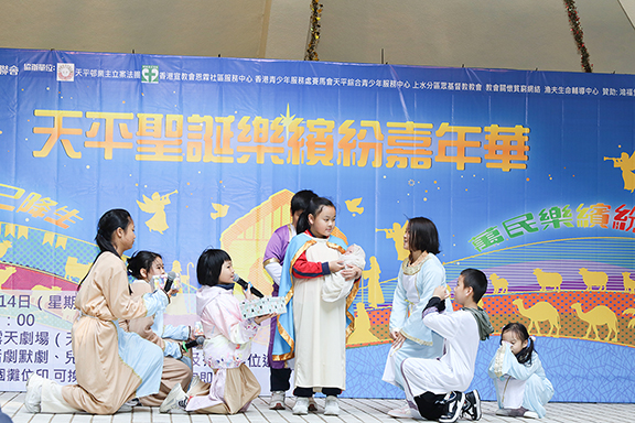 ▲小朋友於「天平聖誕樂繽紛嘉年華」演出聖景故事。