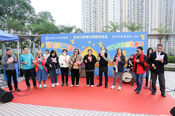 ▲秀茂坪區眾教牧同唱詩歌,歌頌耶穌基督降生。
