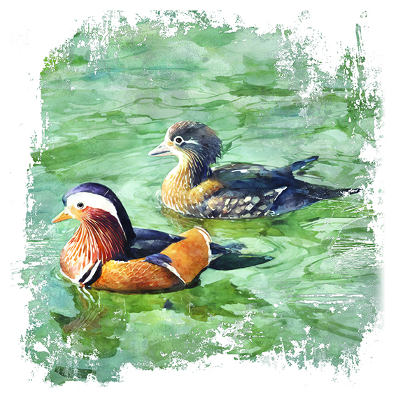 「鴛鴦!」女孩喜上眉梢眼珠亮成寶石般指着池水歡喊。