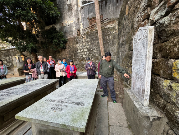▲馬禮遜墓前憑弔。