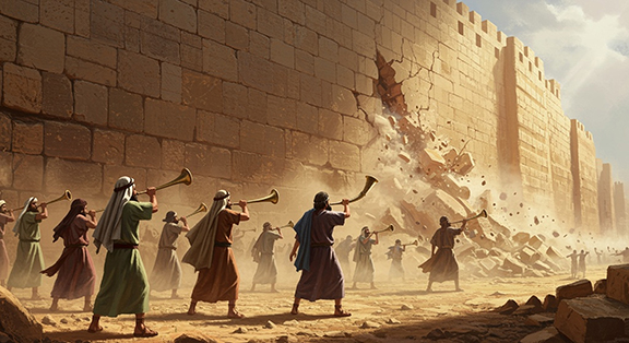 ▲腦海浮起約書亞。以色列因着信,圍繞耶利哥城七日,城牆就倒塌了。