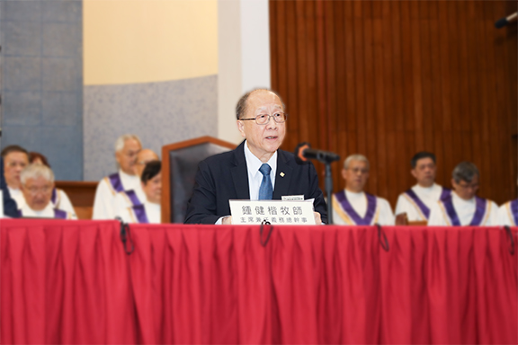 ▲鍾健楷牧師提醒各堂會在變幻的時局下,進入人羣,攜手見證基督大愛。